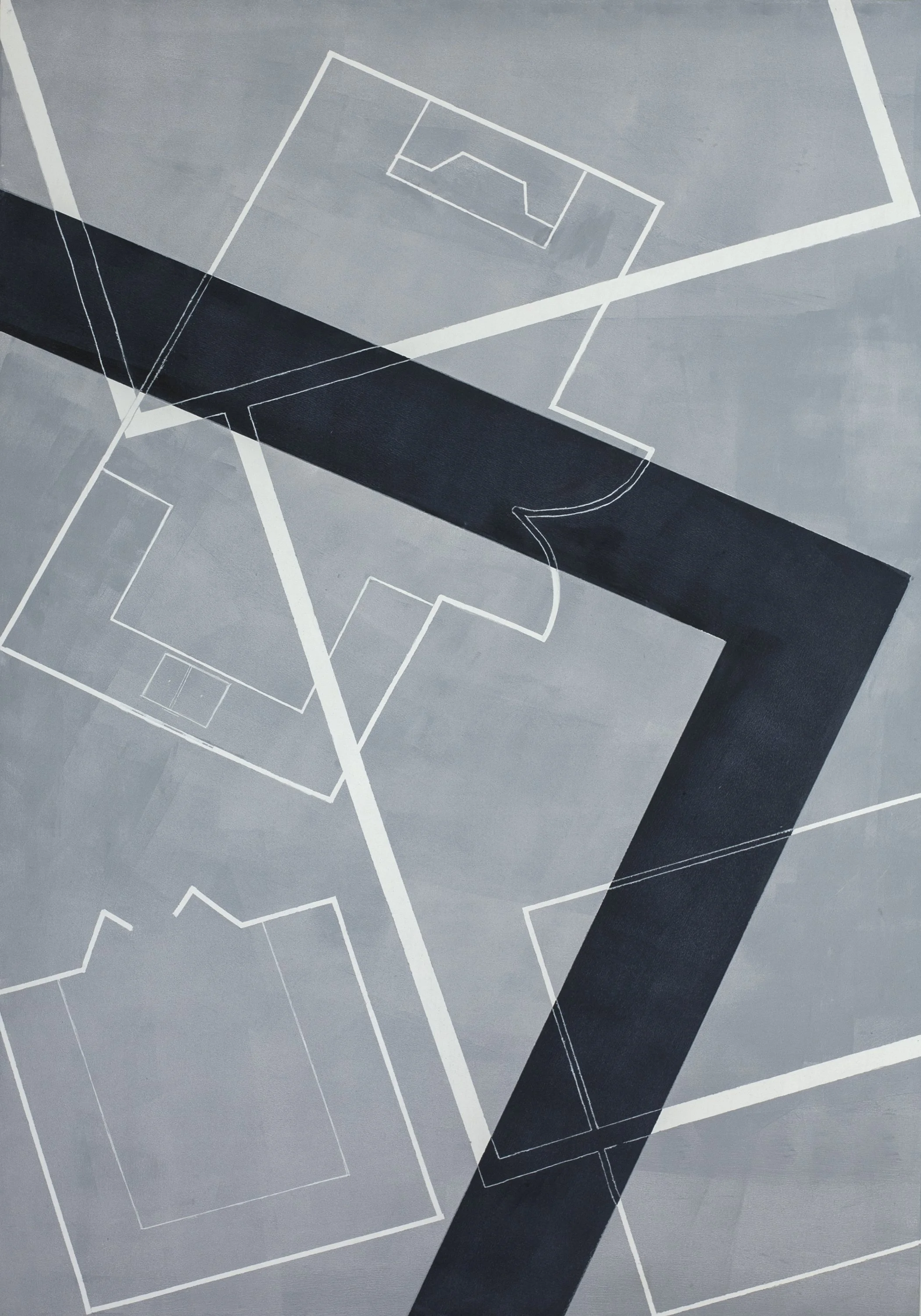The mixed media paintings reflect the building process embodied in architecture. Ideas are the foundation of the paintings. The tools are colour, line, and form, all of which interplay to create the perceived atmosphere.